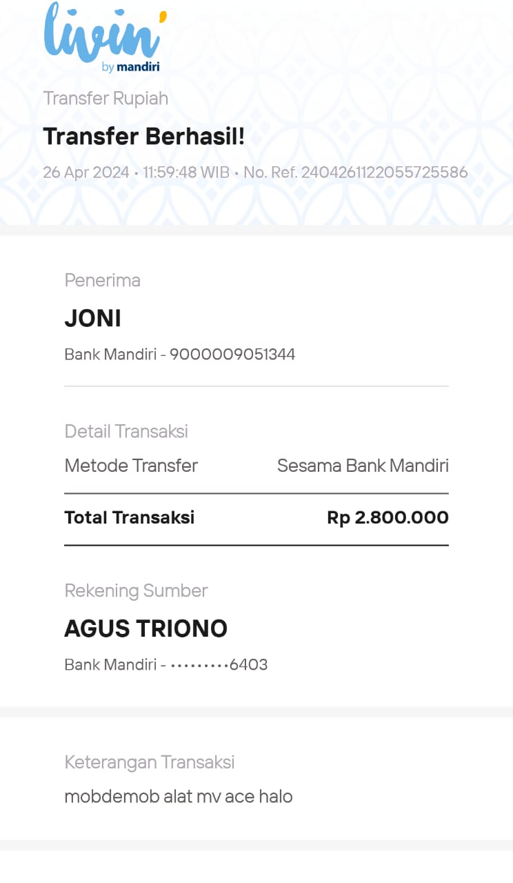 9000020496403 ,MANDIRI A/N AGUS TRIONO